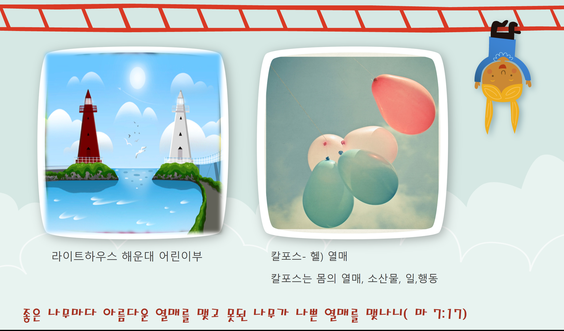 성경에도 "좋은 나무마다 아름다운 열매를 맺고, 못된 나무가 나쁜 열매를 맺나니"- 라이트하우스 어린이부 친구들이 하나님 나라에 좋은 열매를 맺어 10배.50배.100배를 열매맺도록 기도합니다.