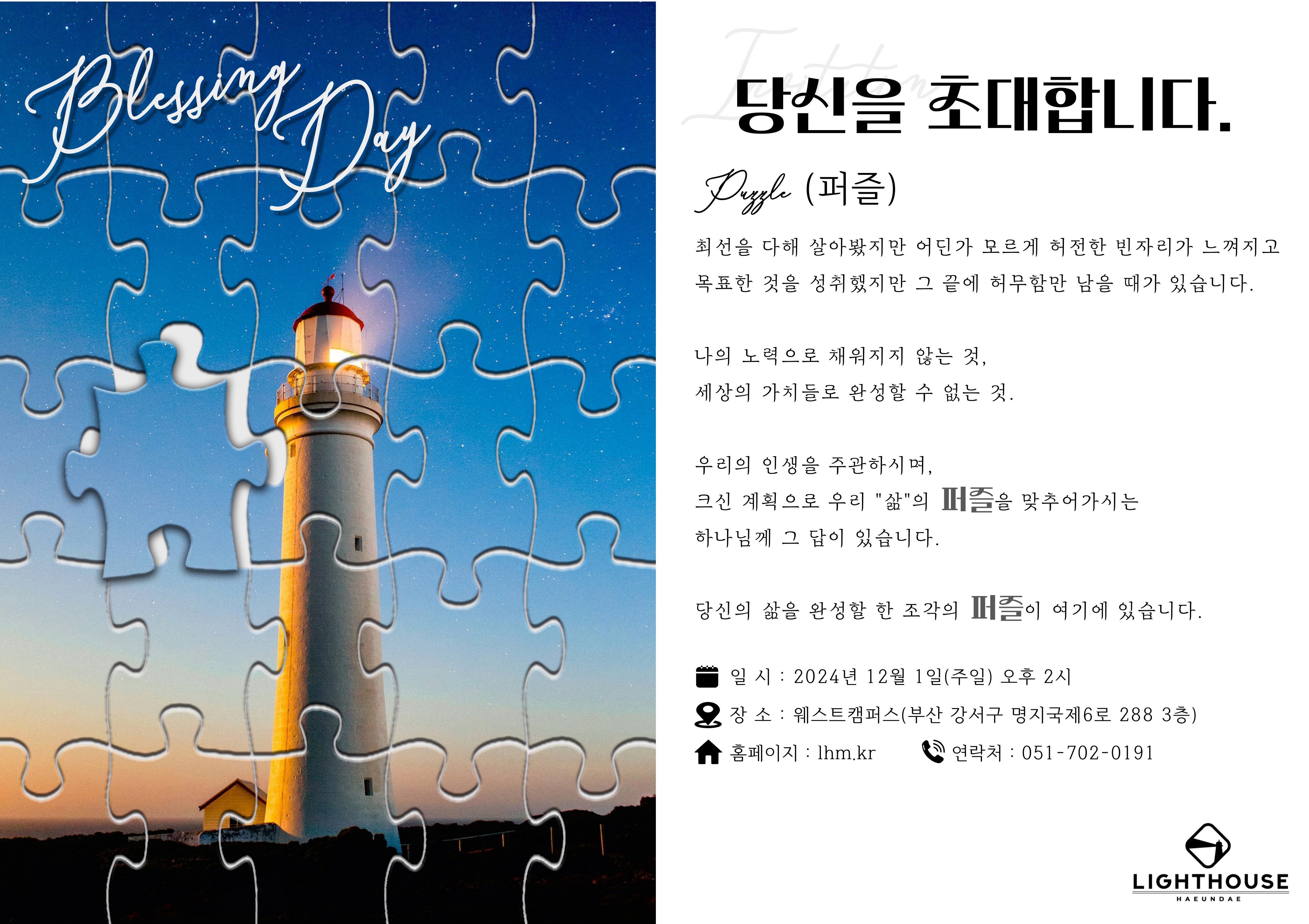 * 카카오톡 친구 검색 : 라이트하우스_해운대